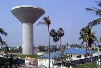 倒锥壳水塔的特点是结构上合理,施工也较方便,造型也显得美观、轻巧、简洁.施工时是先在地面上现浇倒锥壳体,然后用千斤顶整体顶升到塔顶位置,再把锥顶和塔顶浇成整体,减少了高空浇筑混凝土的困难和不安全,也可免除高空搭制模板、脚手架的麻烦,并节省木材.所以在世界各地采用较普遍.