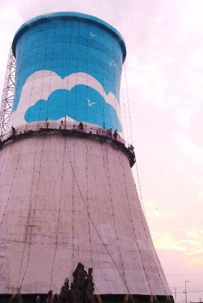 上图为冷却塔刷航标色环,装饰冷却塔照片