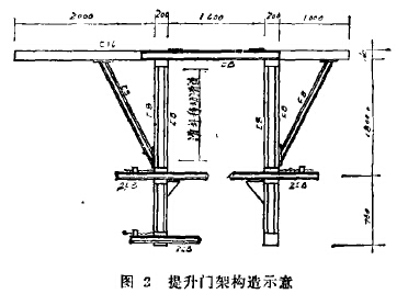直门架分阶段沿升的模板结构体系,是由若干个滑模用的提升门架组成的一个可调铰接构架,其中包括垂直的专用提升门架、门架间的交叉斜撑、模板组、中心环、联结铰座、操作平台、吊架和提升机构等。