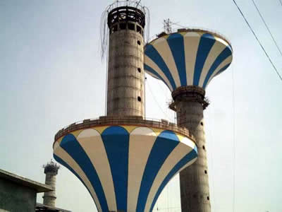 倒锥壳水塔的特点是结构上合理,施工也较方便,造型也显得美观、轻巧、简洁.施工时是先在地面上现浇倒锥壳体,然后用千斤顶整体顶升到塔顶位置,再把锥顶和塔顶浇成整体,减少了高空浇筑混凝土的困难和不安全,也可免除高空搭制模板、脚手架的麻烦,并节省木材.所以在世界各地采用较普遍.