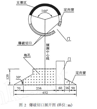 根据以往爆破工程的经验,取切口闭合角α =30°。