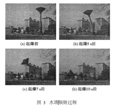 而本次水塔爆破共用药量1. 99 kg,可见水塔爆破时炸药爆炸产生的震动不会对西侧宿舍楼造成危害。