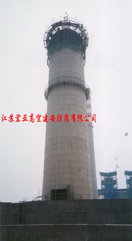 江苏奥洋科技有限公司自备电厂100m烟囱滑模施工现场