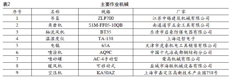 作业机械为表2中所列的主要作业机械及其他施工工具若干。