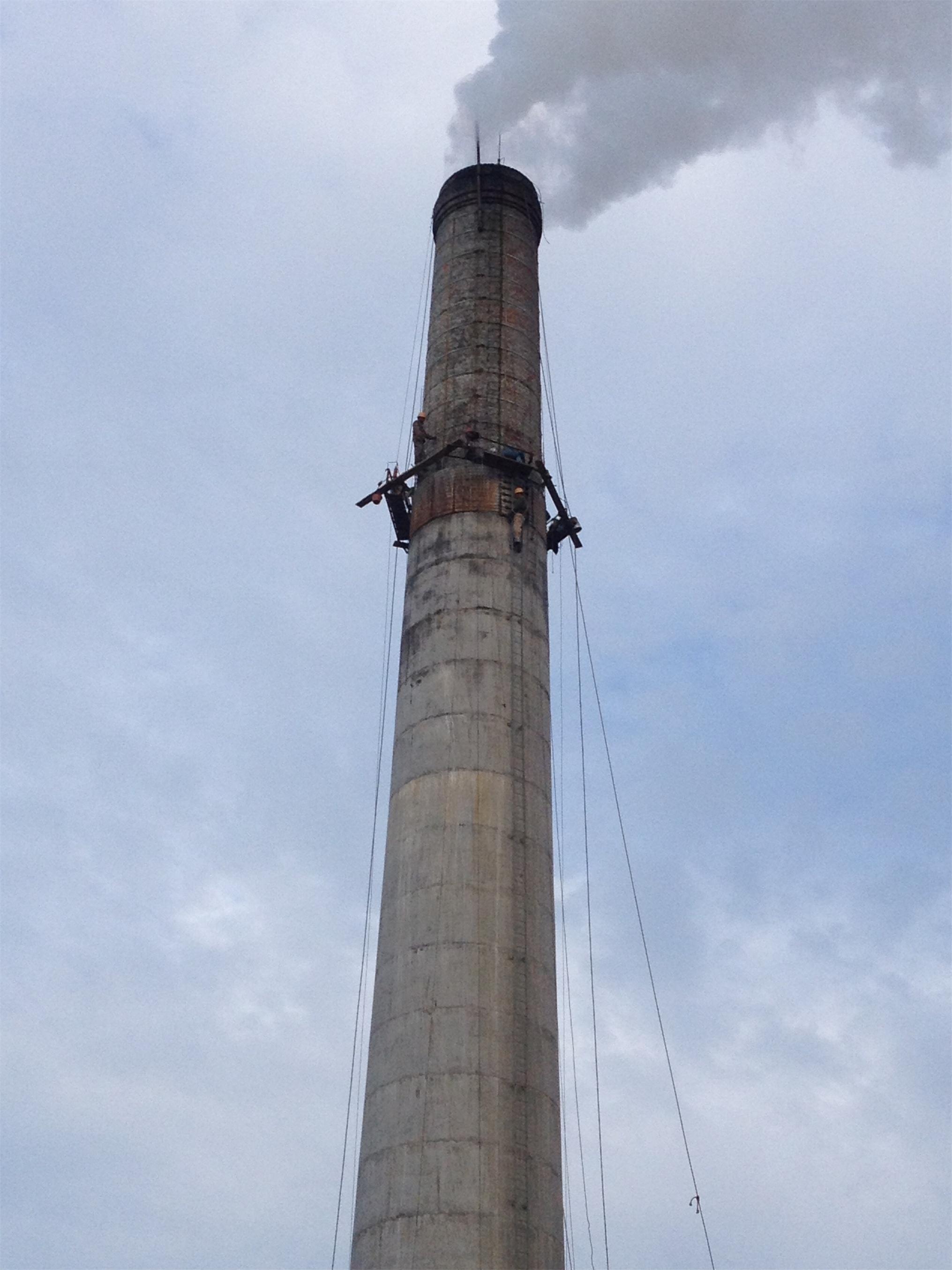 钢筋混凝土烟囱的筒壁材质是为钢筋混凝土的烟囱,混凝土烟囱相比砖烟囱强度高,抗震能力强,可以建很高的高度,但造价也比较高,施工难度相对较大,因此,拆除起来也是难度比较大的一项工程,拆除混凝土烟囱,根据高度的不同,拆除选择的方法不一。钢筋混凝土烟囱的高度有60m、80m、100m、120m等。
