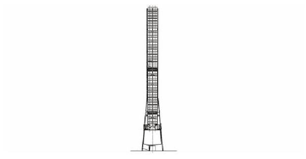 酸雨问题在世界范围内影响着人类的生存环境, 有必要减少硫元素扩散到空气中的量, 从源头上遏制酸雨的发生。目前, 业界普遍采用湿法脱硫工艺, 其中, 无GGH (烟气加热器) 的湿法脱硫工艺在燃煤电厂里得到应用[1-2], 它可以有效地起到节能减排的作用, 但该工艺会导致烟气温度下降、湿度上升, 加重烟囱的腐蚀[3-4], 为此, 人们积极探索新材料来解决这一问题。玻璃纤维增强塑料 (俗称玻璃钢, FRP) 因具有良好的可设计性、突出的耐蚀性而在欧美等发达国家燃煤电厂脱硫烟囱防腐蚀工程中广泛应用。经过广大科技工作者的深入研究, 我国电力规划设计部门明确指出:“玻璃钢可以在国内脱硫烟囱防腐蚀工程中被采用”。作为首个双管悬挂式FRP排烟内筒, 国内某新建电厂装机总量为2×660 MW, 排烟筒内径为7 200 mm, 每节筒体高8 000mm, 标高240 000 mm, 平均壁厚21 mm, 见图1。由图1可见, 排烟筒的两节筒体通过内、外表面湿法手糊工艺进行连接。
