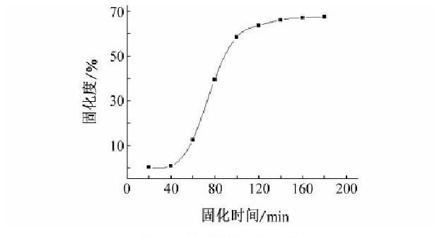 树脂的固化程度会影响产品的力学性能以及生产周期。用BOEN差示扫描量热仪 (DSC) 在10℃/min的升温速率下, 研究了20~200℃时, 树脂固化度与固化时间的关系。