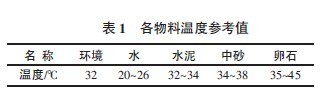 (1) 混凝土拌和物温度.各物料温度参考值如表1 所示. 经计算T0=33 ℃.