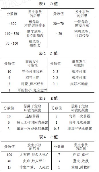 D = L ·E·C式中 L ———发生事故可能性大小(见表1) ;