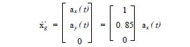 烟囱的地震破坏实际上都是三向地震分量综合作用的结果。双向水平以及竖向同时输入,大大增强了地震破坏力。为了分析地震波输入维数对烟囱地震反应的影响。采用两种输入方式,本文假定地震动输入考虑两个水平分量、不考虑垂直、扭转和摇摆分量。根据抗震规范规定考虑双向水平地震作用下的扭转地震作用效应时,取ay ( t) 为ax ( t) 的0. 85 倍,其加速度向量可表示如下:
