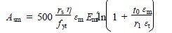 式中: Asm为每m 高筒壁所需的环向钢筋截面面积; rs为环向钢筋所在圆半径;η为与环向钢筋根数有关的系数; f yt 为温度作用下,钢筋抗拉强度设计值;εm为筒