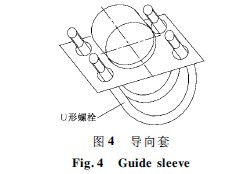 在每个水平桁架的“活动接口”处,设置双向对拉钢丝绳,如图3 所示。钢丝绳上端固定在机位的竖向主框架上,下端连接在接口另一边的水平桁架上,钢丝绳中部有花篮螺栓,可通过调整花篮螺栓收紧钢丝绳。架体提升过程中,随着架体逐渐收拢,各接口的间距也在不断减小,此时可同步不断收紧对拉钢丝绳,以加强架体接口处的整体性。另外,各接口处的大横杆以及栏杆均采用导向套连接( 见图4 ) ,这种导向套安装简单,使用效果较好,既可以加强接口处的整体连接强度,又能使接口部位的连接钢管有规律地收缩到架体内部,起到导向、连接的双重作用。