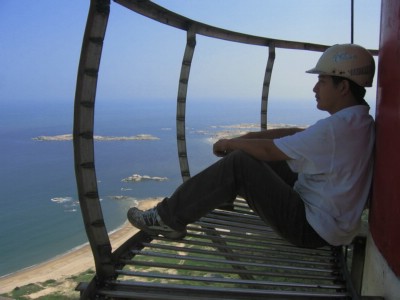 下图为安装烟囱休息平台,烟囱平台制作照片