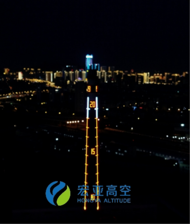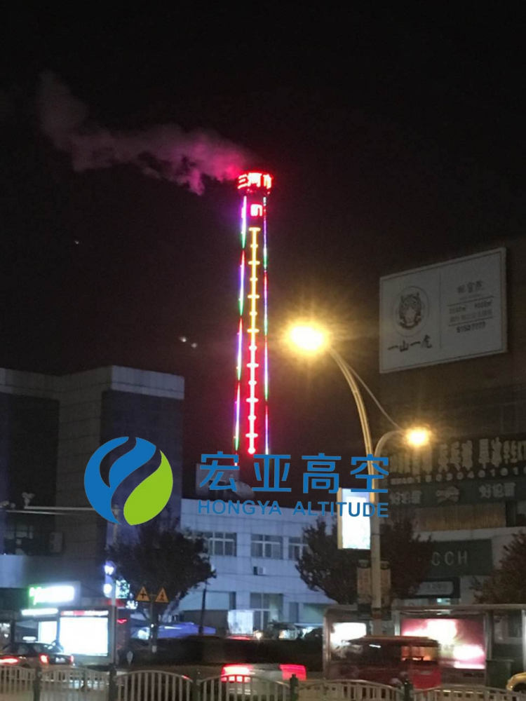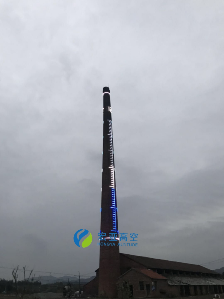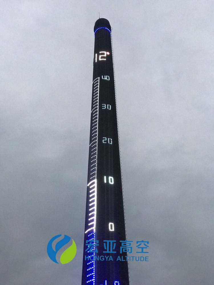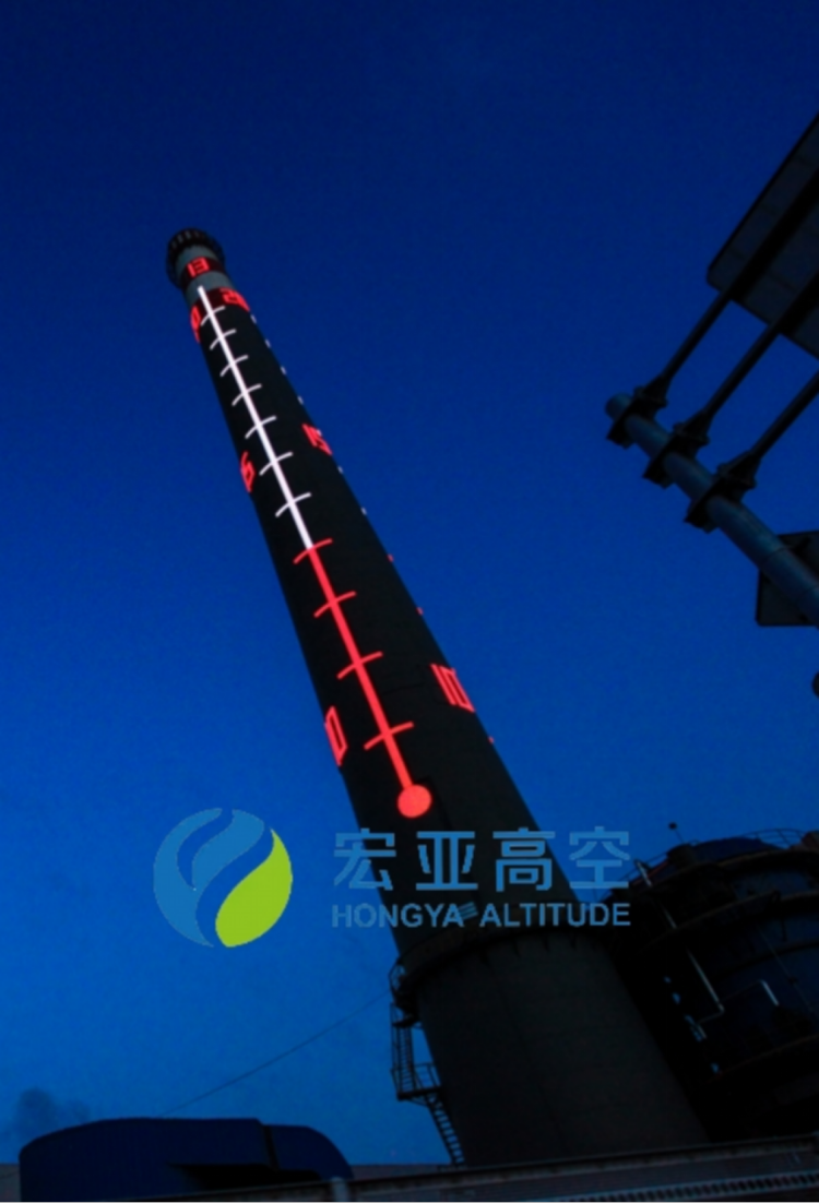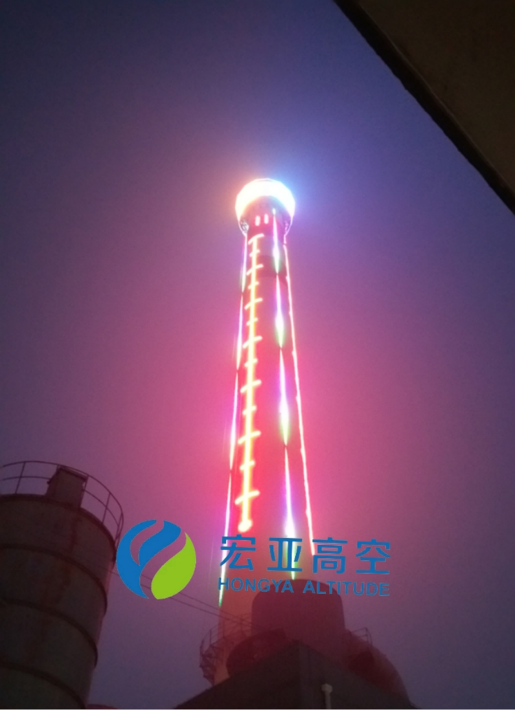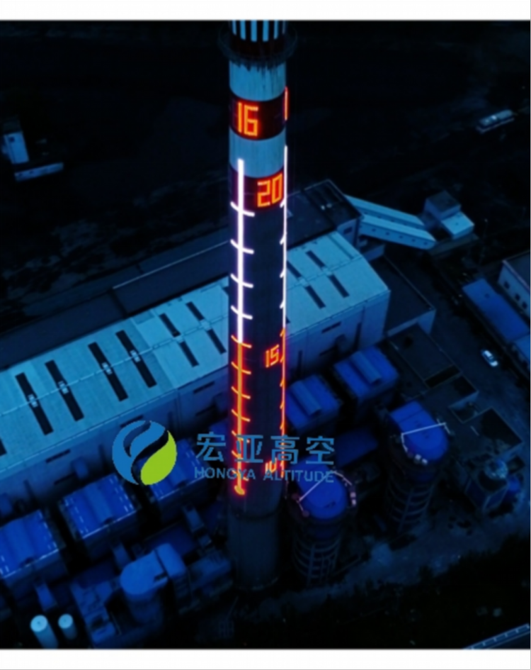 该烟囱实际高度为55米,实际使用点光源LED灯数量约1700盏,业主实际投资约46万元(除电费)。